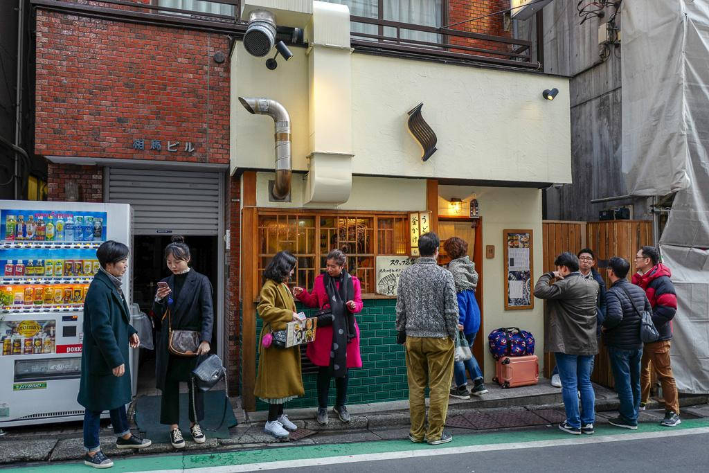 Jeg er skrubbsulten og klar for sen lunsj. Stedet jeg skal til er Shin Udon i bydelen Shinjuku. Her er det to køer utenfor restauranten. Mor holder orden og subber i oversized Crocs. Hun deler ut menyer og tar opp bestilling slik at du slipper å vente når du endelig får bord. Her lager de sine verdenskjente udon-nudlene for hånd. De skal være best kalde for da har de riktig konsistens. De kan bli litt for soggy av å ligge i varm kraft. Jeg bestiller kalde udon-nudler med mørt svinekjøtt og et perfekt tempuraegg med rennende kjerne. Retten serveres med soyasaus som du regulerer selv. Den er helt fantastisk. Jeg skjønner hvorfor folk står i kø her. Og det som overrasker meg er at det er generelt mange unge mennesker som står i kø for tradisjonsmat. Det hadde tatt seg ut om vi hadde sett ungdom stå i kø utenfor Kaffistova for en porsjon kjøttkaker…