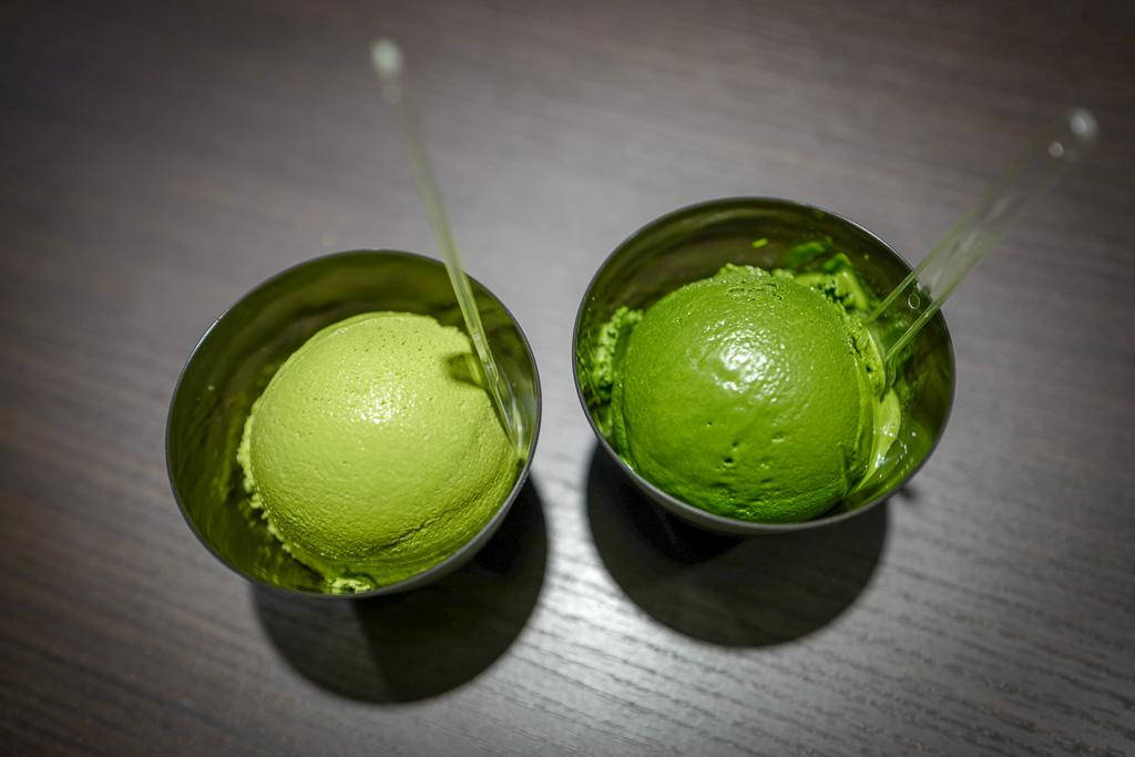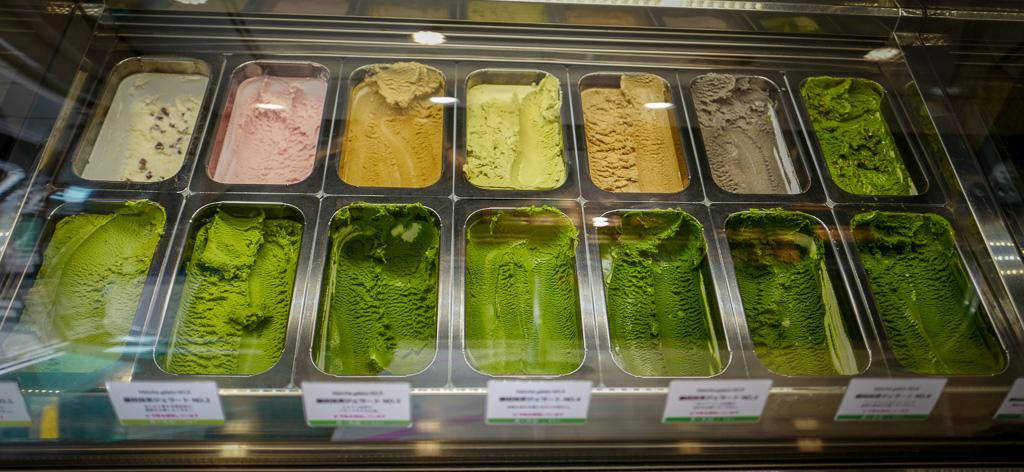 Rett bak tempelet ligger Suzukien Asakusa. Dette iskremstedet spesialiserer seg på matcha-te. Her kan du kjøpe matachaiskrem i 7 ulike styrker og varianter. Jeg gikk for styrke 2 og 7 (den sterkeste). Jeg var overrasket over hvor fantastisk nummer 7 smaker: Kremet, fyldig og mettet. Nesten som mørk sjokolade. Nummer 2 er søt, mild og kremet.