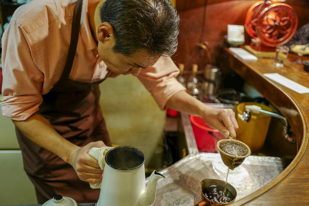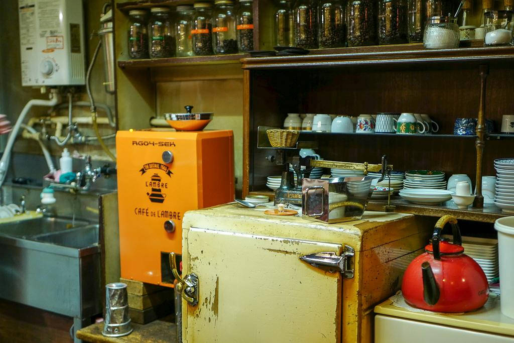 Cafe de l’ambre er Tokyos eldste kaffehus en skikkelig opplevelse. Her kan man røyke (ikke at det er positivt) og drikke kaffe. De har en imponerende meny og begrepet Hand Drip er så old school at hipsterne på Løkka kan gå hjem å vogge. Her kvernes kaffen og veies.