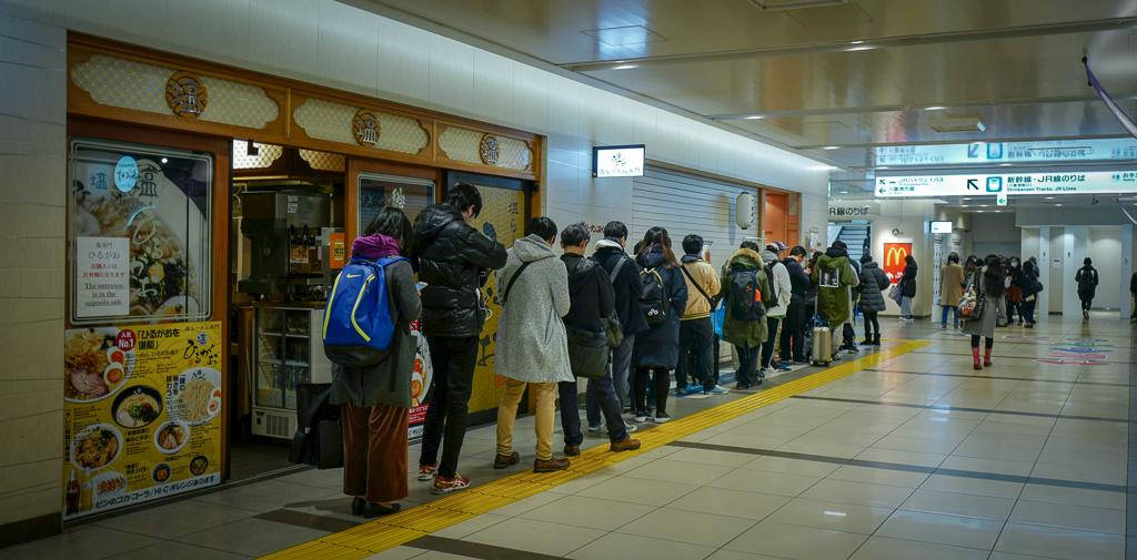 Jeg tar metroen til Tokyo Station og det som kalles Ramen Street . Når jeg kommer til Rokurinsha ti på halv åtte på morgenen (de åpner halv åtte) er det kø til langt rundt hjørnet. Stedet er kjent fra første sesong av Chef’s Mind der David Chang besøker stedet.