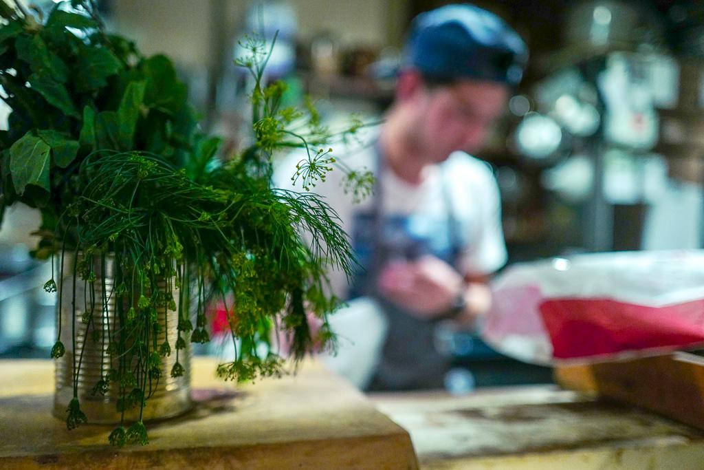 Jeg går for et utvalg av dagens meny og kokken lager fabelaktige retter. Jeg drikker fire glass med utvalgte naturvin – servert perfekt temperert.