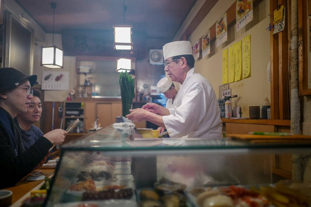 Jeg har spist mye sushi, men ingen har smakt bedre enn dette. Fersk fisk rett fra fiskemarkedet, nydelig tilberedt mens vi sitter der ved disken. Mine favoritter denne dagen er unami (røkt ål) og Gunkan maki med lakserogn og selvsagt uni (kråkebolle).