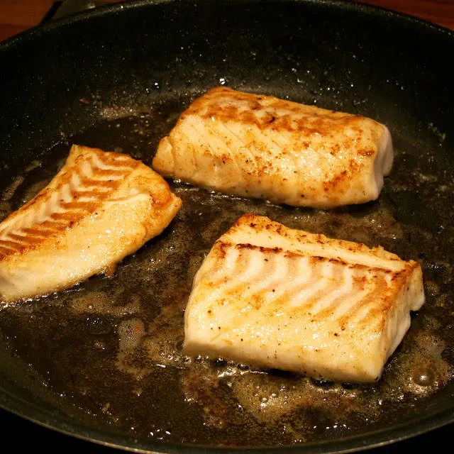 Stek torskefiletene i smør og olje. Salt og pepre. Jeg brukte torsk fra Strøm.