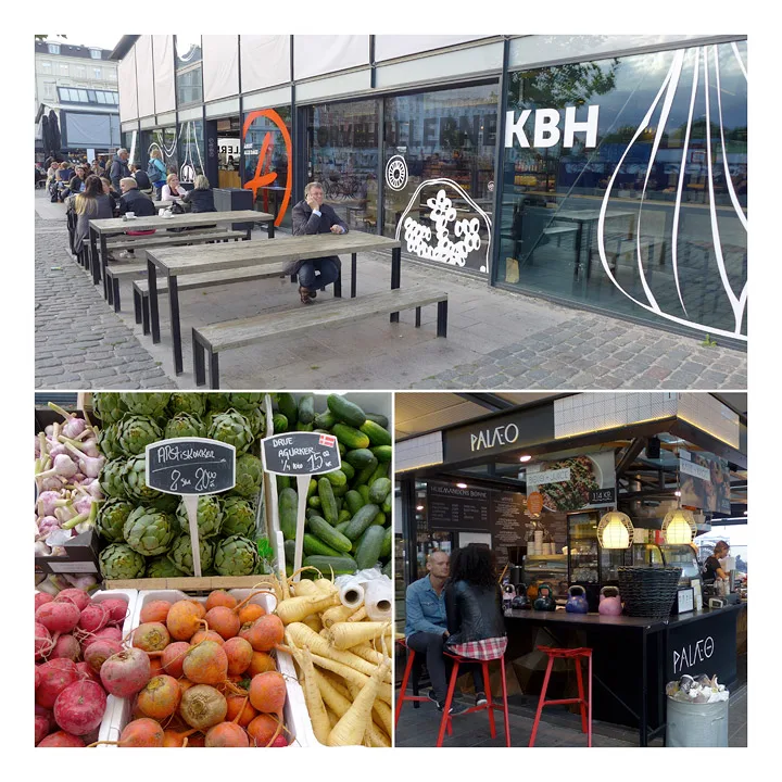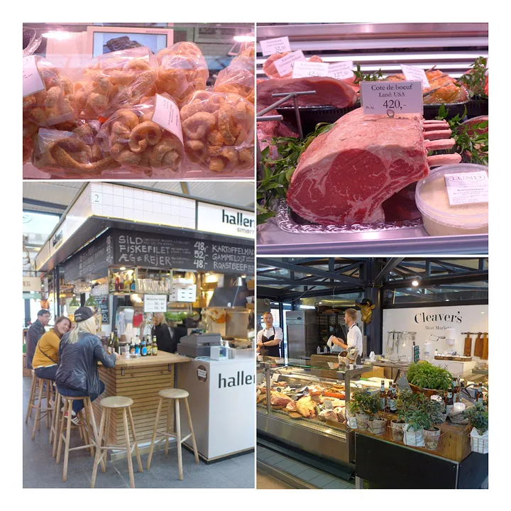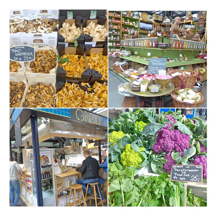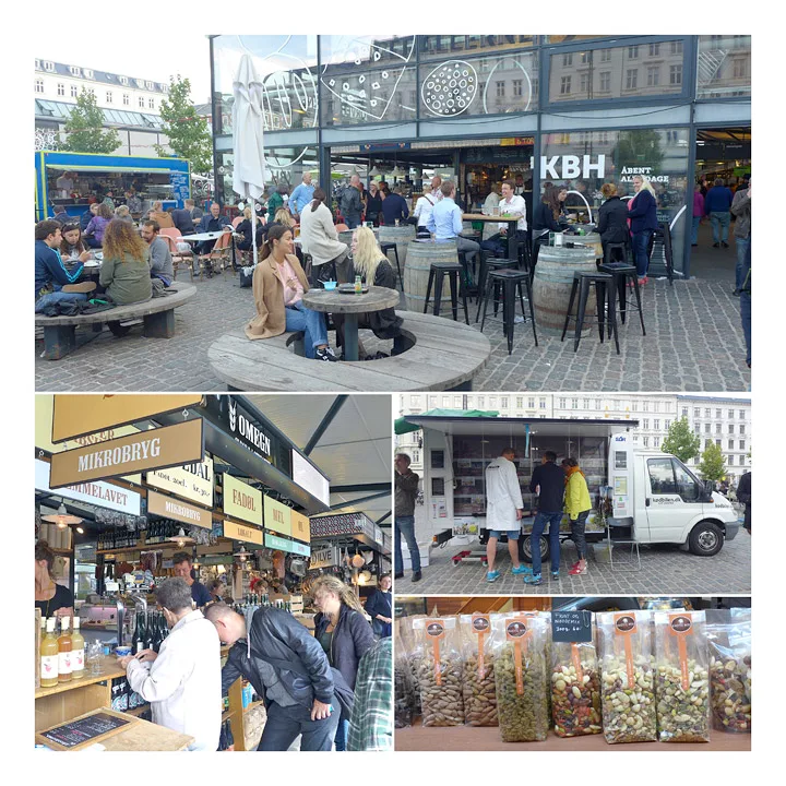 København har en fantastisk mathall. Den ligger på Israels plass rett bak Nørreport stasjon (altså midt i byen). Det har fra gammelt av alltid vært market her. Før i tiden gikk det under navnet grønttovet (frem til 1958). Torvehallerne har to bygg pluss et torgområde i midten. I den ene hallen selges kjøtt, fisk og ferskvarer generelt. I bygg nummer to selges kaker, kaffe, te og andre herlige varer. Grunnen til at byggene er adskilte er at matlukt ikke skal sette seg i «fine» varer som kaffe, kaker og konfekt.