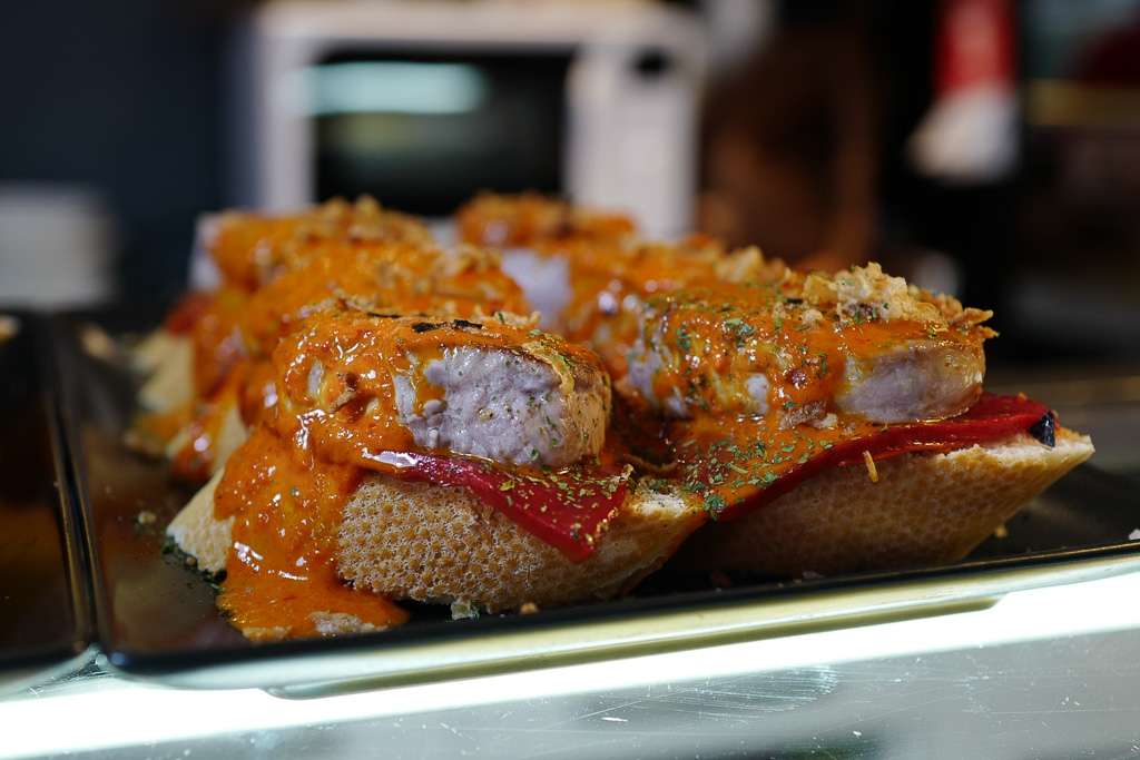 Vi skal holde oss i Calahorra litt til. På Mercato de Abastos bør man stikke nesen innom Flor y Nata når kokken kommer ut med pinchos-fatene sine.