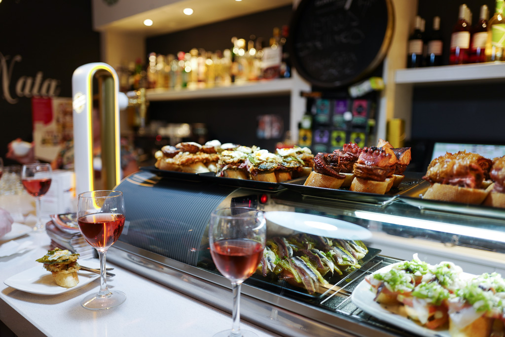 Regn med å bruke 0,80 euro for et glass vin og mellom 1,50 og 1,80 for en pincho. Sykt billig.