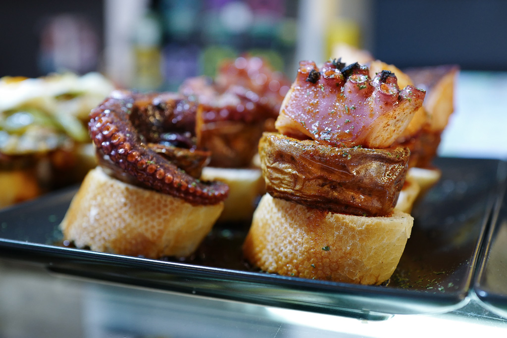 Hva er pinchos? Jo, det er det samme som Pintxos (baskisk navn) og tapas. Ofte serveres de på en brødskive med en tannpirker igjennom. En pincho er et spyd – derav navnet.