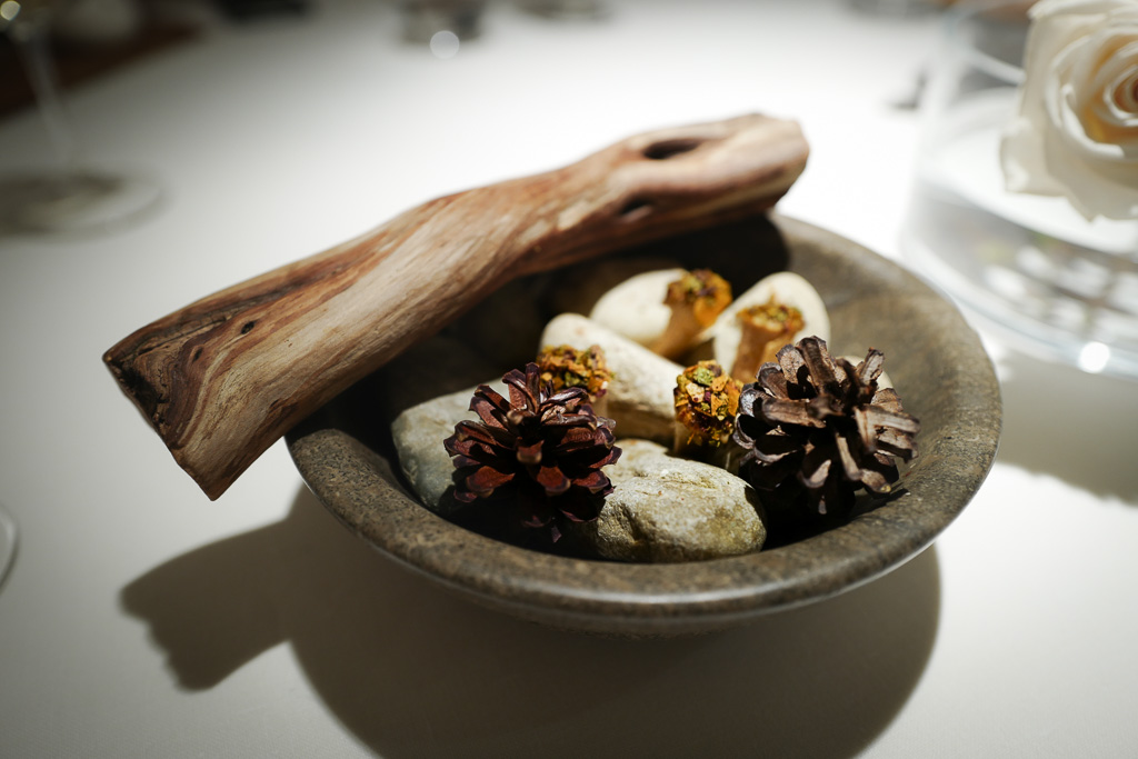 Denne sesongen serverer El Portal del Echaurren to menyer. Vi spiser «land/jord» som viser det kokken klarer å få tak i av råvarer innen en 10 kilometers radius. Menyen er inspirert av naturen rundt byen.