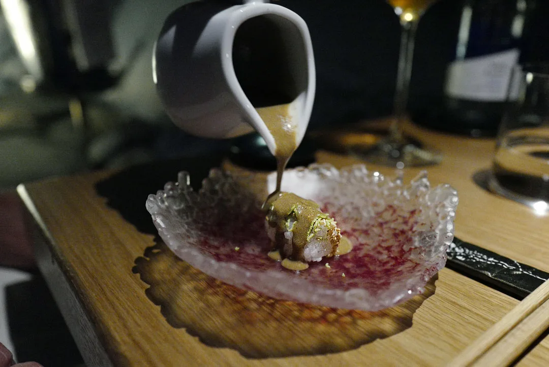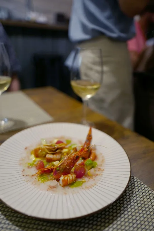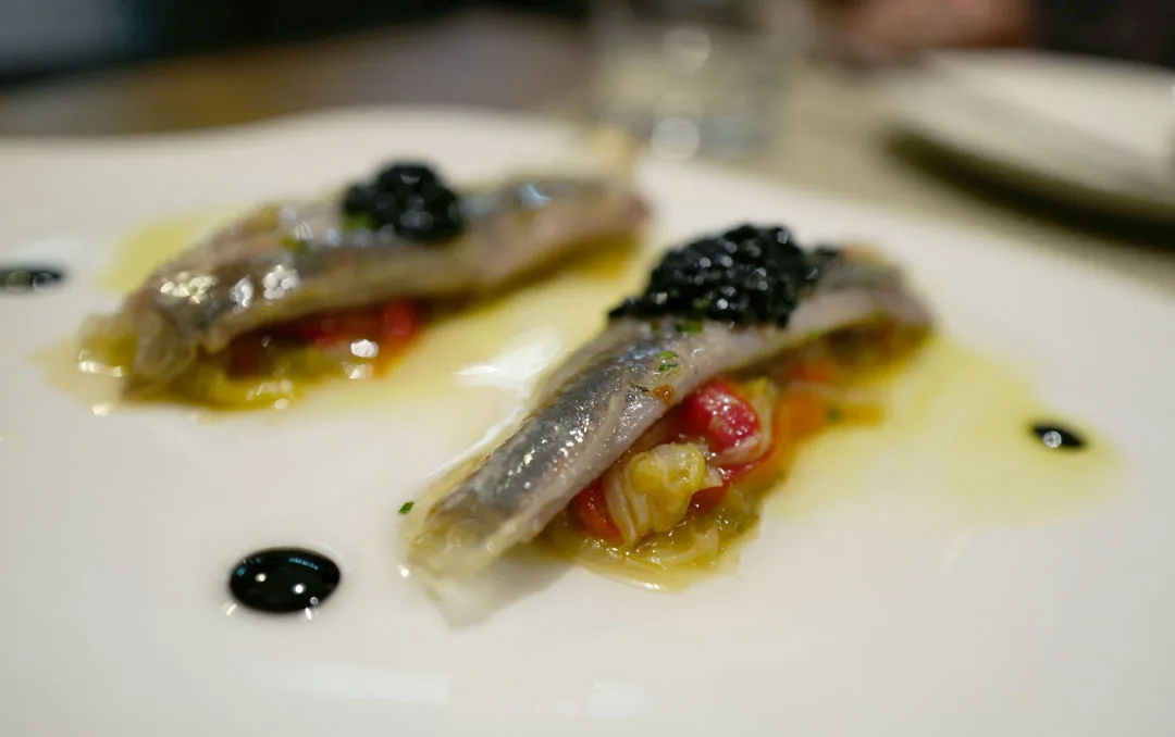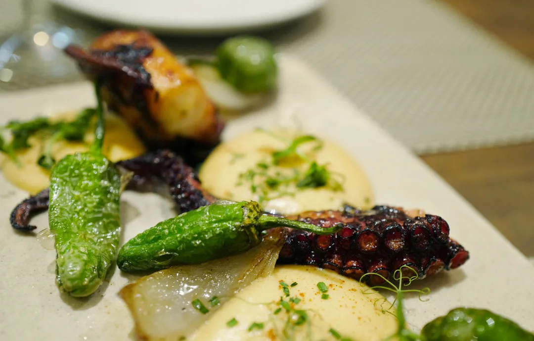 En av de desiderte høydarene når det kommer til rettene på menyen er blekksprutretten deres med potet- og paprikaskum. Blekkspruten er grillet og retten er en moderne versjon av pulpo de la gallega – en av mine favorittretter.