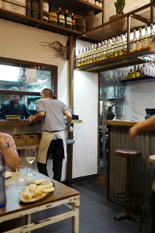 Det er to bordsettinger hver kveld og en meny. Du betaler på forhånd inn et beløp ved booking. Mat + vin kommer på ca 100 euro per person. De har et fantastisk utvalg av naturviner.