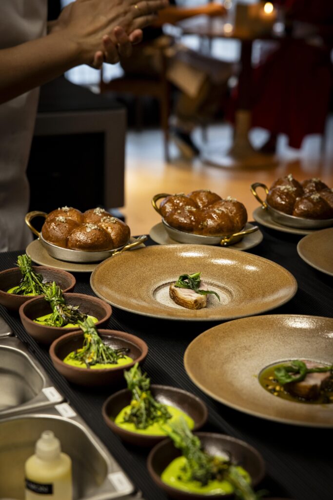 Nyt et family-style måltid i Karoline Restaurant tilberedt av Renaa Team.