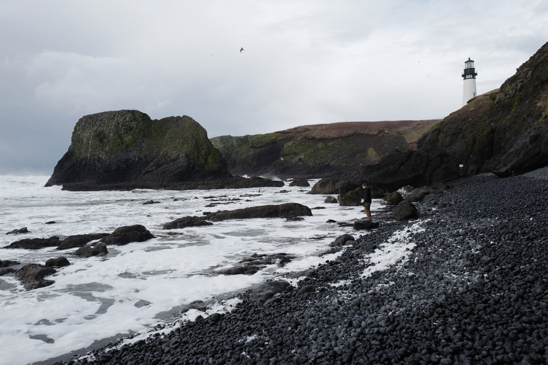 Besøk den flotte vulkanske stranden ved The Yaquina Head Light