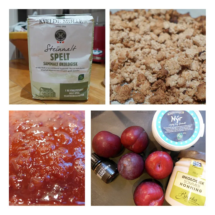Desserten i dag er laget med plommer, speltmel, honning, ferskosten Nyr og lakris + noen andre småting. Det er en slags «tilslørte bondepiker», men mangler egentlig så mange av de klassiske ingrediensene, så vi kaller den heller «Avslørt skaptrønder». Du kan ikke forvente deg hverken bart, skinnvest eller tresko ved å spise denne desserten, men bare en deilig og frisk avslutning på et herlig måltid.