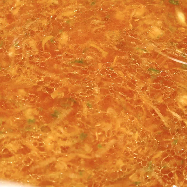 Lag sitrussausen: Riv skall av 1/2 lime og 1/2 appelsin. Press saften av 1 appelsin og 1 lime. Riv 2 fedd fersk hvitløk og 4 cm ingefær (3 ss). Finhakk en halv chili. Den kan godt være litt sterk. Ha dette over i en gryte og tilsett 1 ss sukker, 1 ts sesamolje og 1 ts lys soyasaus. Kok opp og la trekke i 10 minutter. Sausen er ferdig. Smak til om du trenger litt mer sødme.