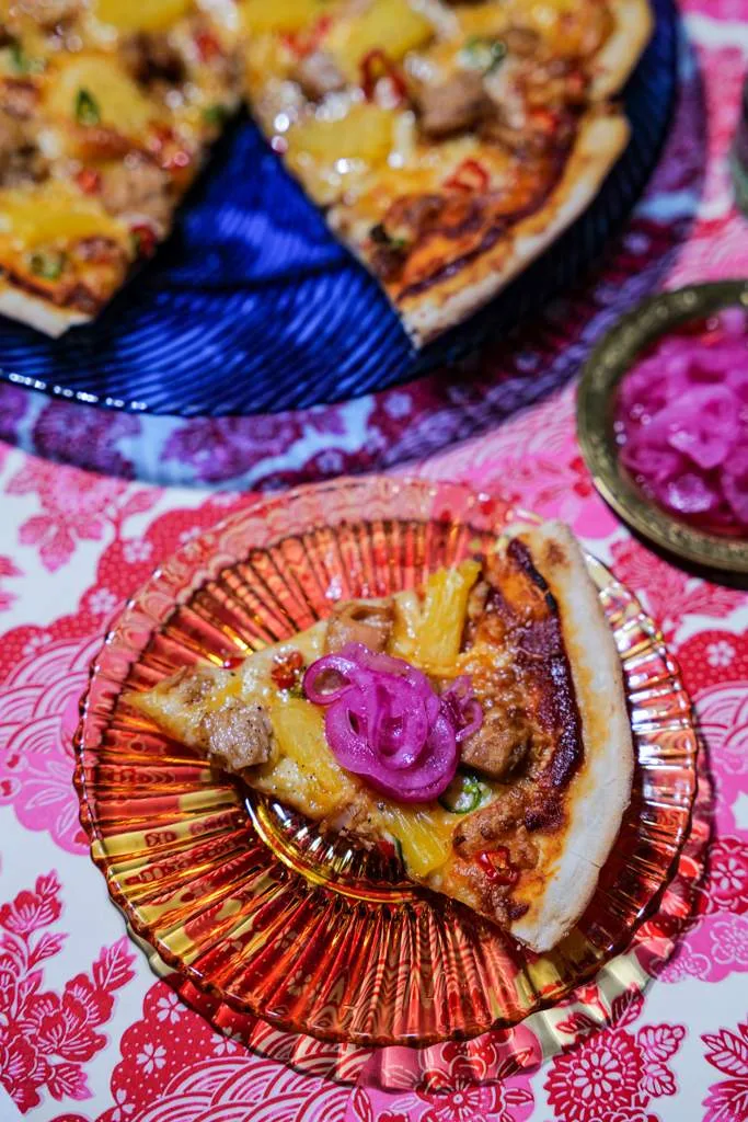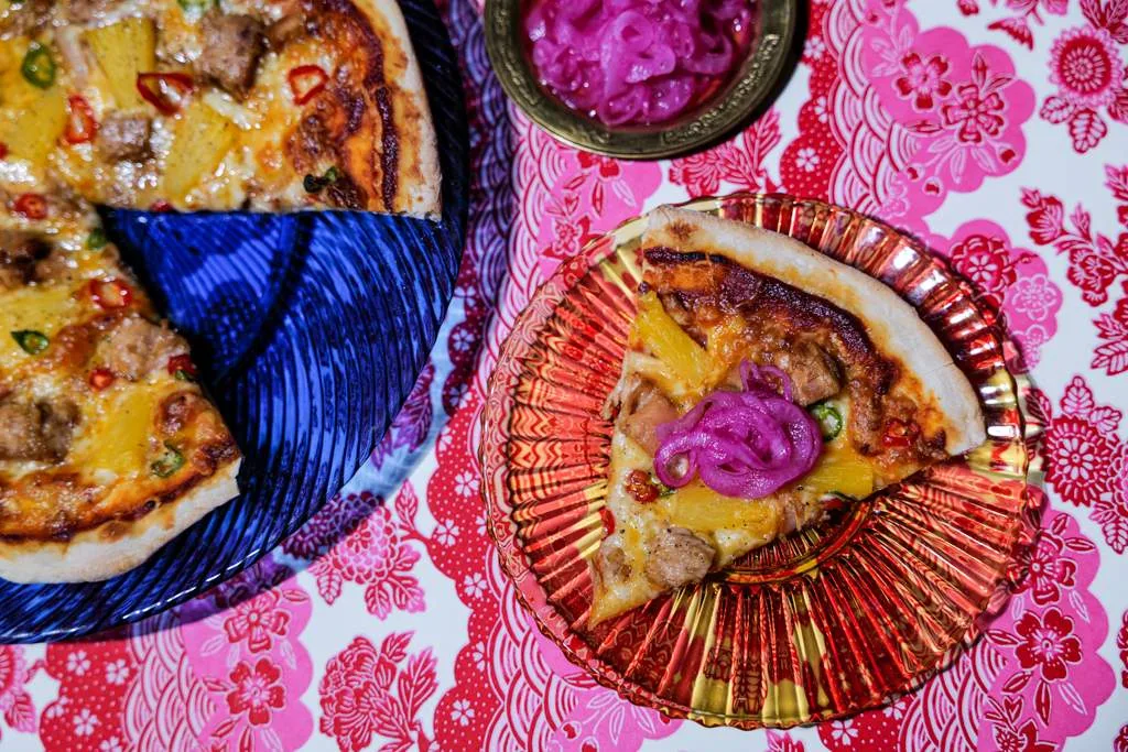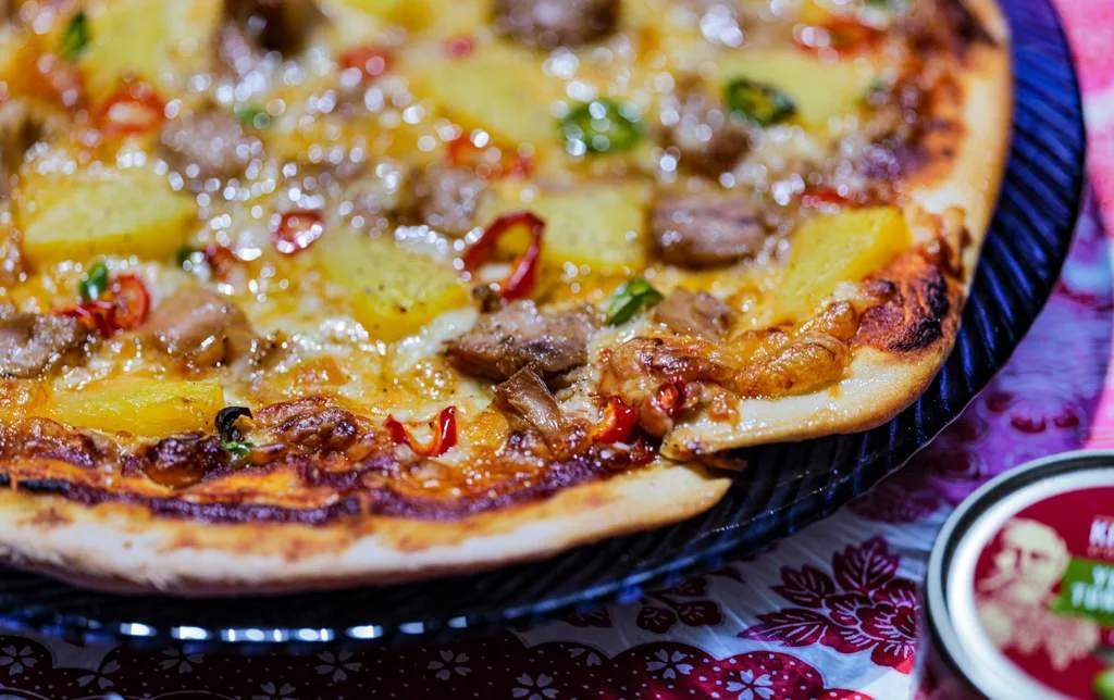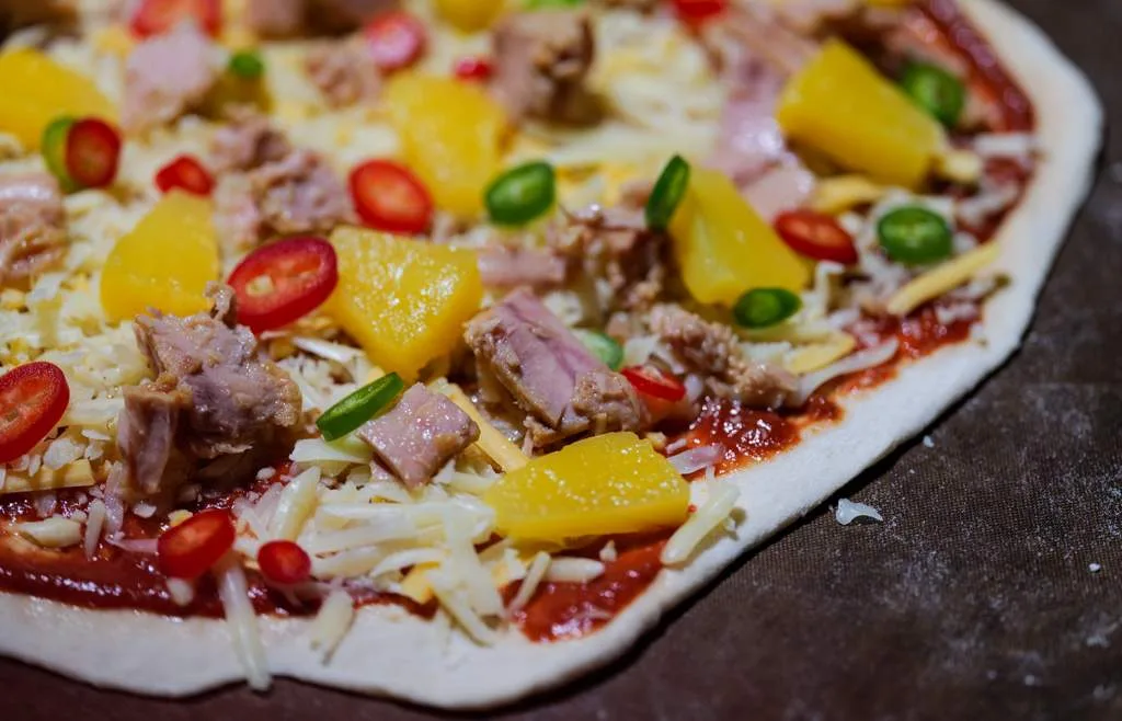 - Legg på et tynt lag pizzasaus. Strø ost over og top med biter av tunfisk og ananas. Strø chili i skiver og sett midt i ovnen på forvarmet ovn (maks temperatur) og stek til pizzaen er sprø og gyllen.