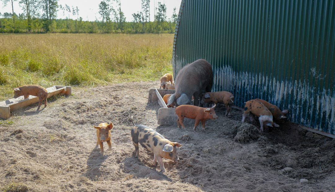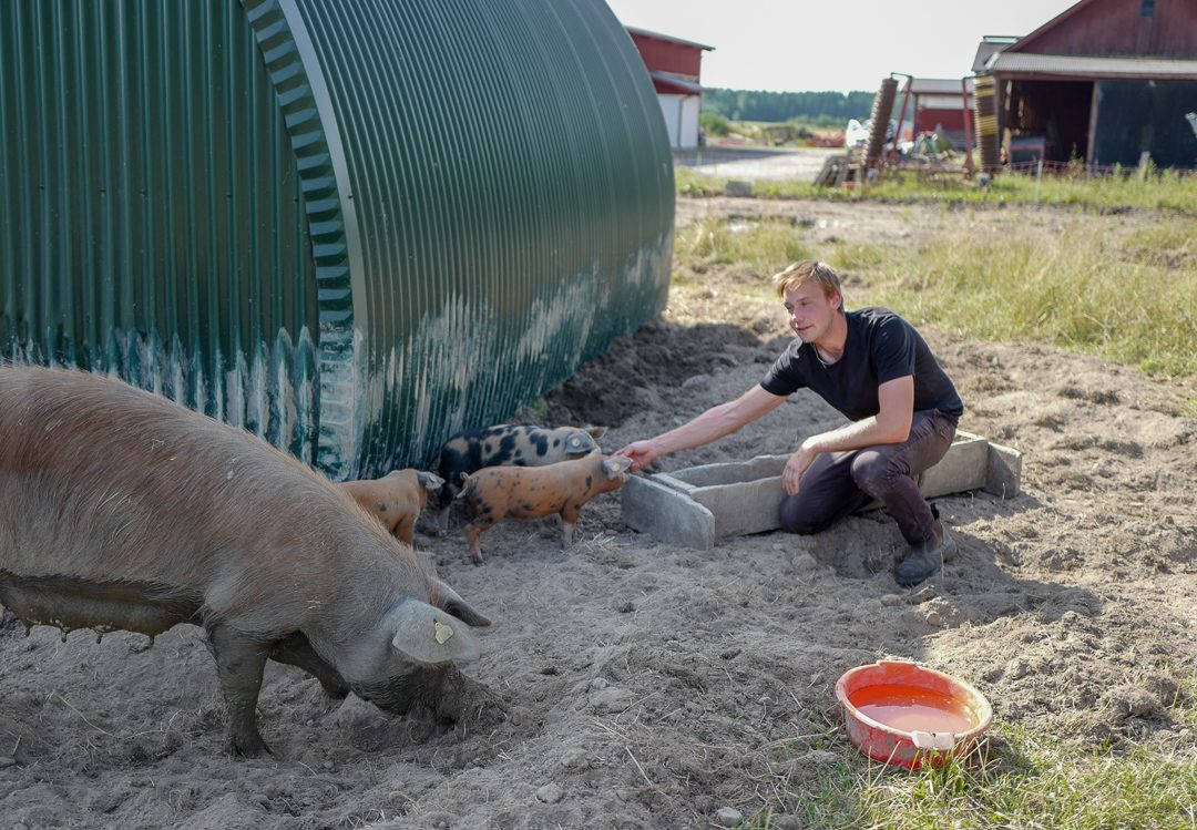 Først ut er Adam Arnesson aka ekobonden. Jannelunds gård ligger idyllisk til på den svenske landsbygda. De har griser. Ja, smågriser som springer vimsete og lykkelige rundt i søla der de spiser epler. Siden 2016 har man avlet opp linderödsgriser på gården. De er en fryd å se på der de lusker nysgjerrige rundt oss, men piler fort avgårde og søker trøst hos mamma når man kommer litt for nære.