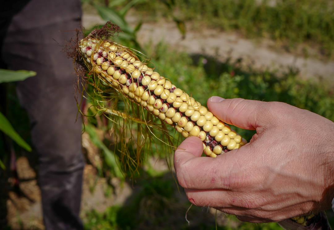 Det dyrkes gamle sorter korn på gården – langstilket og med lange røtter, som kan vise seg å være mer egnet for den type værforandring som vi kommer til å se mer av fremover. Adam viser frem et viktoriansk maltkorn fra 1830 som han har skaffet frø gjennom Genbanken. Maltkornet skal brukes i ølproduksjon.