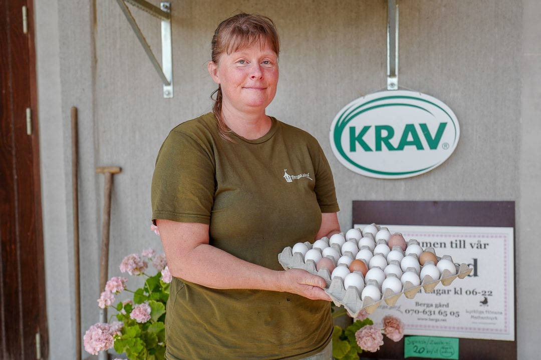 På Berga gård i Fjugesta holder familien Schneider til. Her stipper hundrevis av høner inn og ut av hønsehuset. Gården er KRAV-merket. Hønene produserer fantastiske egg og for første gang i mitt liv har jeg sett det som heter Prisesseegg. Dette er navnet på eggene som er de første eggene som unge høner verper. De veier mellom 35 og 53 gram.