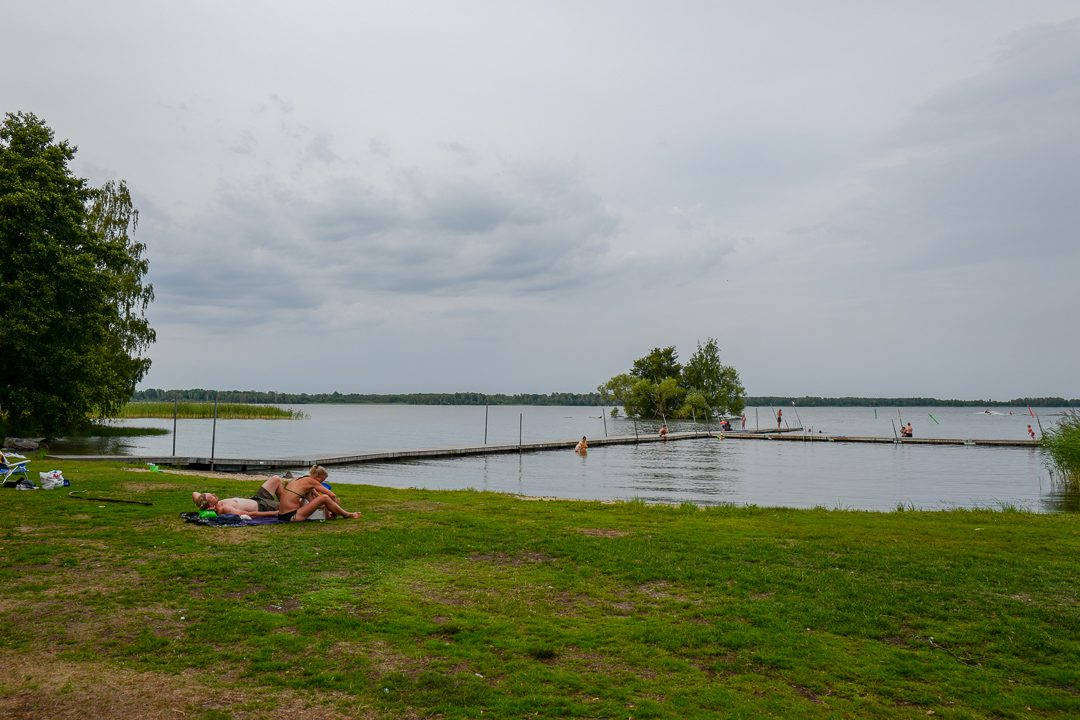 Vi ankommer Katrinelund på ettermiddagen. Det er 34 grader og vi er overopphetet. Vi er ved innsjøen Hjälmaren – Sveriges fjerde største innsjø. Først av alt. Jeg liker ikke innsjøer. Du ser ikke hva som er på bunnen når du bader. Jeg liker salt hav. Men det er varmt. Det er bare å hive seg i vannet, uansett uklart vann eller ikke.