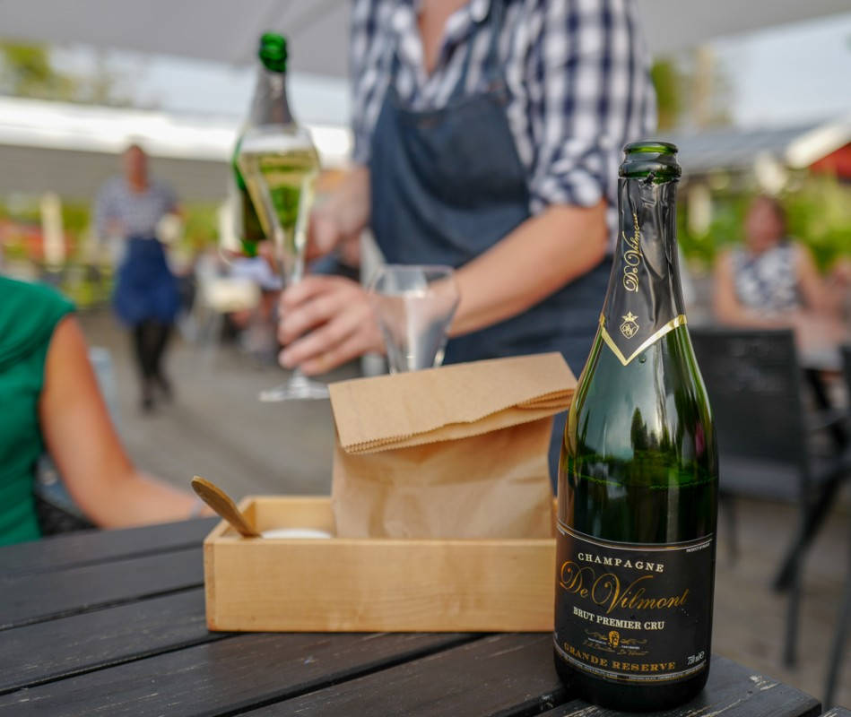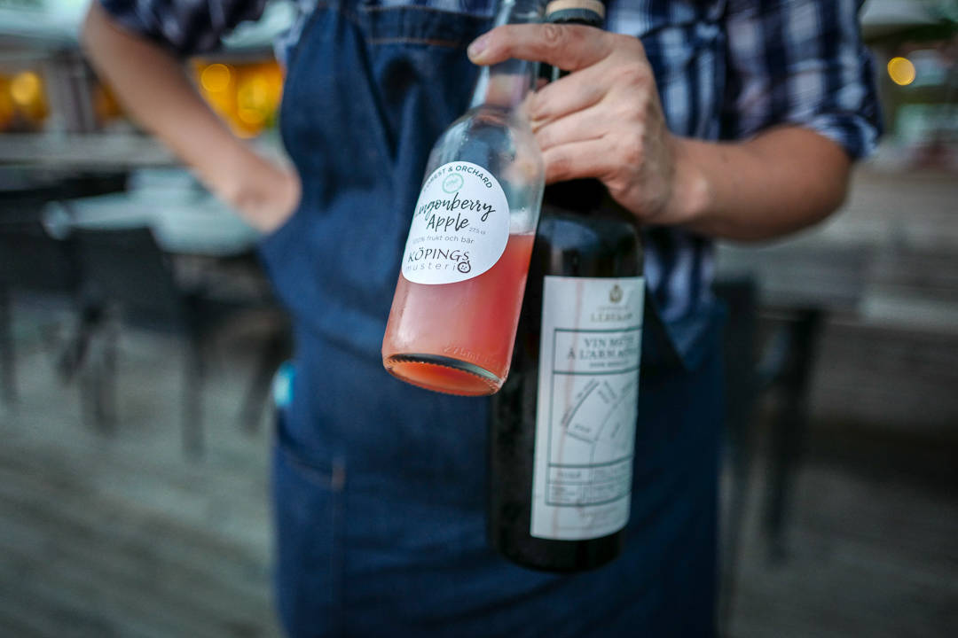 Vi får et glass champagne til å begynne med. Dvs Sanna skal kjøre tilbake til Örebro etter middag og velger alkoholfri drikkemeny. Her blir man tatt seriøst. Til hver rett får Sanna en ny juice, sider eller alkoholfritt øl. Når jeg får bobler i glasset, ja da får hun også det. Dette er en service det er verdt å applaudere. Ikke mange spisesteder tar så godt vare på de som velger å avstå fra alkohol av forskjellige årsaker.