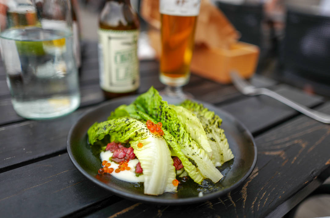 Jeg gleder meg allerede til neste rett. Inn kommer en lekker håndskåret tartar laget på Närkekött med nori, älvdalsrom og piclesmajones. Det er en perfekt rett i min bok. Alle ingrediensene passer perfekt sammen og ølet fra Örebro Brygghus er et perfekt følge.