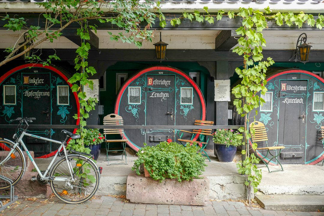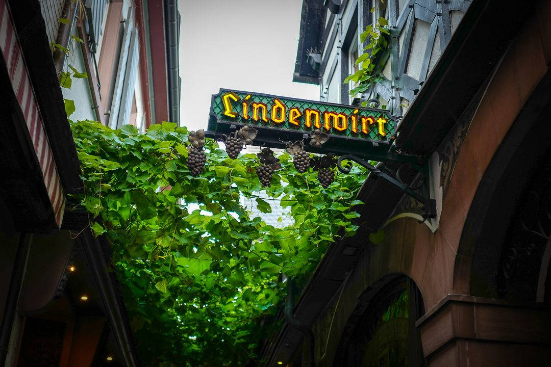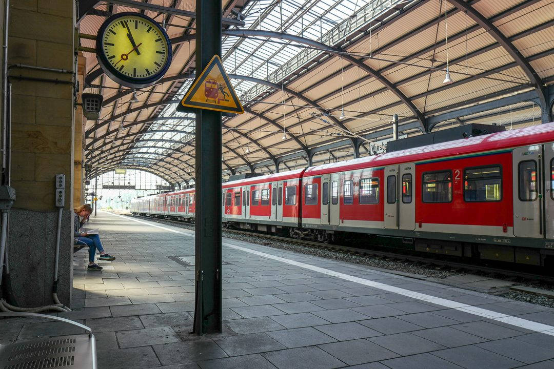 Denne gang skal jeg med tog til Rüdesheim i Rheindalen (Rheingau). Jepp, selveste vinland! Programmet mitt er passe hektisk og jeg skal rekke et tog fra flyplassen. Jeg er ute i god tid og dobbeltsjekker med en av de ansattte på togstasjonen om hvilket tog jeg skal ta. Han sender meg på S8. Ikke S9 som det står i programmet mitt. – Spiller ingen rolle, sier den supersure mannen og sier at både S8 og S9 kjører til stasjonen der jeg skal ta toget videre.
