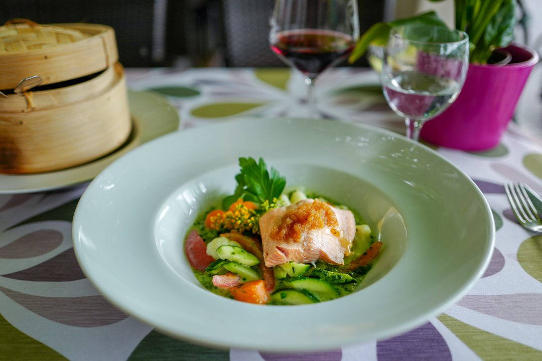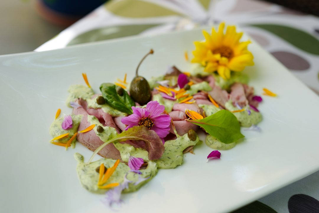Igjen er bruken av urter og blomster perfekt. Torsten har gått på 16-dagers kurs for å lære om blomster og urters egenskaper og vet hvordan han skal bruke dem i de flotte rettene på Hotel Zwei Mohren.