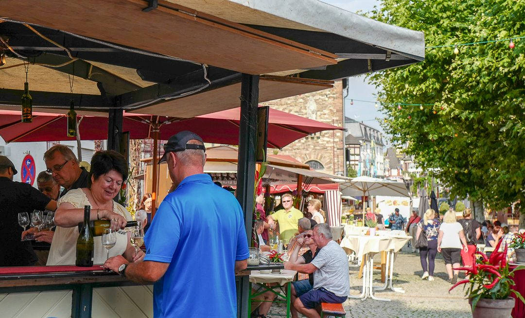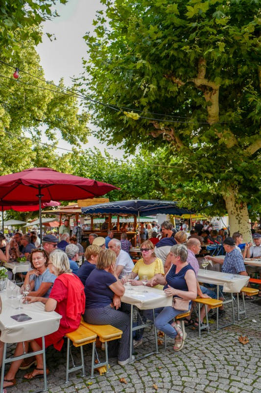 Apropos Riesling. Det er vinfestival når jeg jeg er i Rüdesheim og det må selvsagt oppleves. På torget er det dekket opp til fest, dans og vinsmaking.