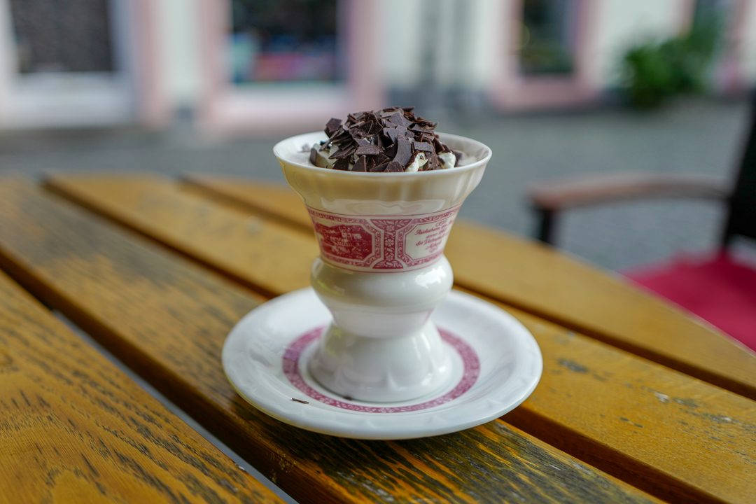Jeg har fått servert Asbach tidligere. Ja, faktisk i Forvaltervillaen til Calle Feght på Gotland. Rüdesheimer coffee ble først laget av tv-kokk Hans Karl Adam i 1957 og serveres i spesielle kopper.