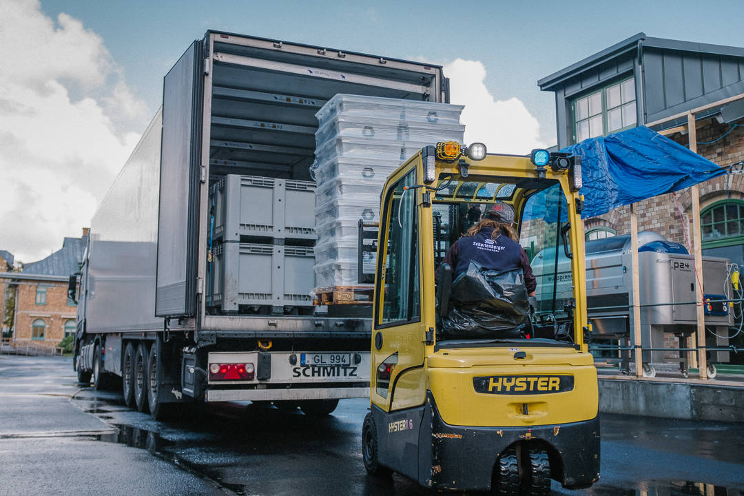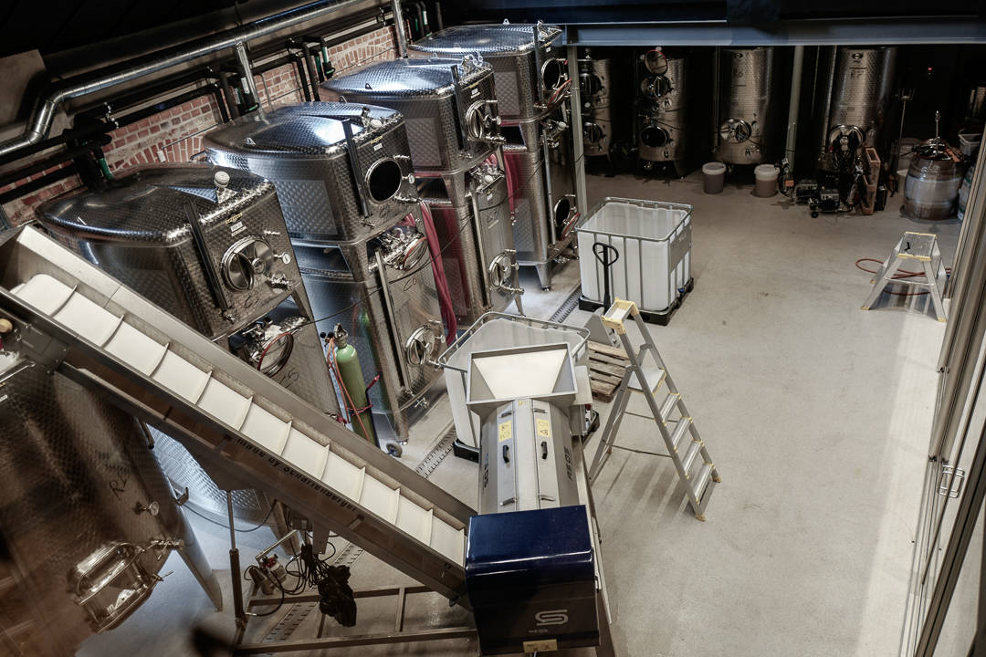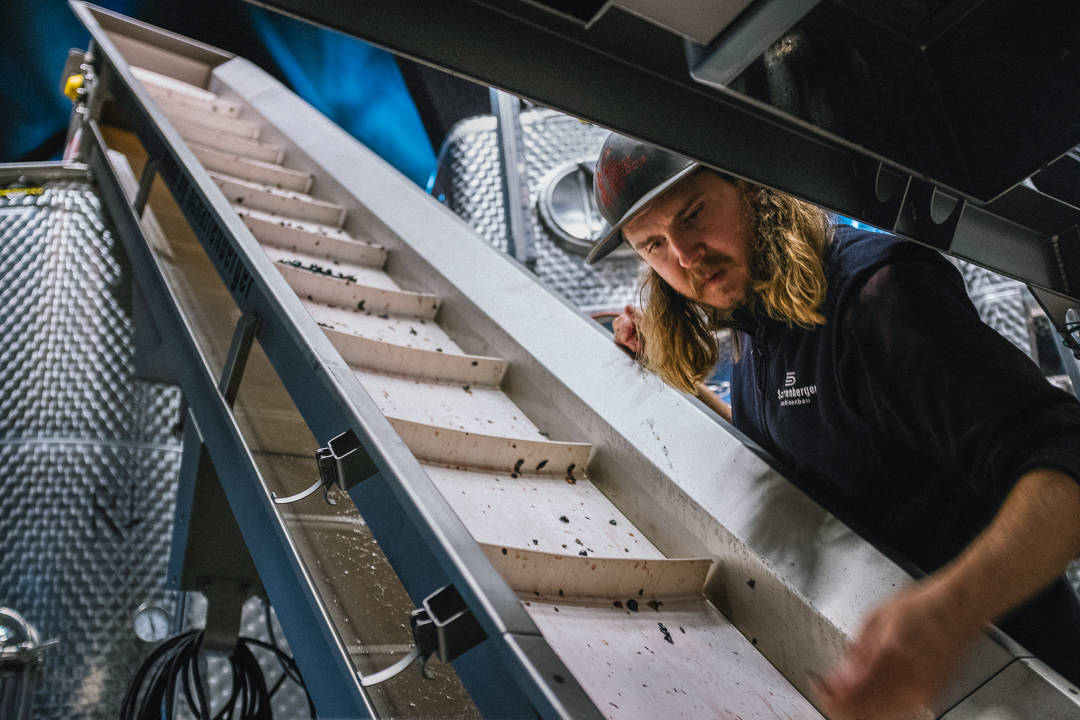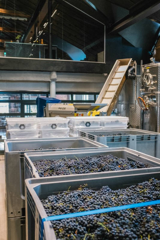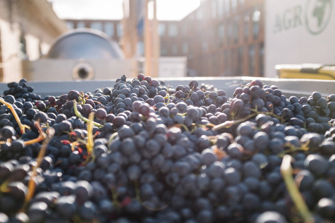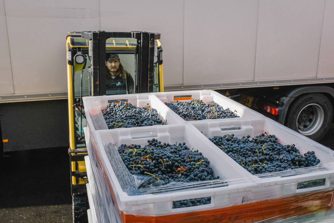 Druene fraktes altså til Göteborg. Nyplukket legges de i små kasser (som rommer 13-14 kg druer) som stables opp på hverandre. Dette tåler druene uten å bli ødelagte. Så kjører bilen fra vingården til Sveriges eneste Urban Winery for å bli til vin. – Det viktigste er hvor druene plukkes, ikke hvor de gjærer, sier Kenneth.
