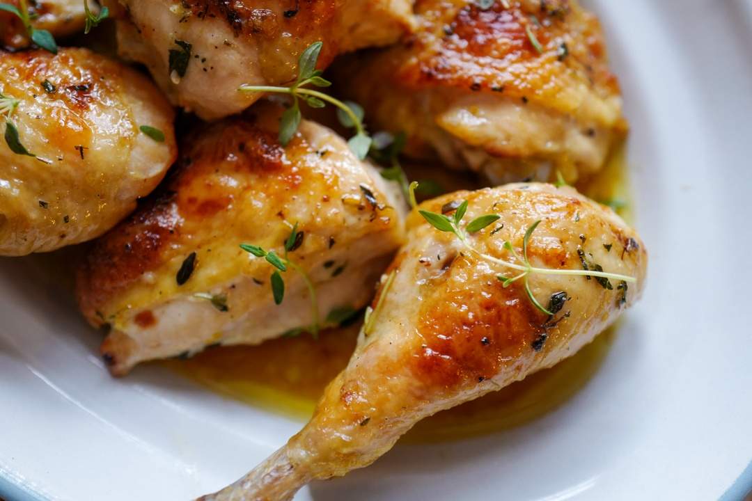 Brystkjøttet er det kjøttet som først er ferdigstekt i ovnen, så du kan legge disse stykkene i ovnen 5 minutter etter de andre for å få perfekt resultat.