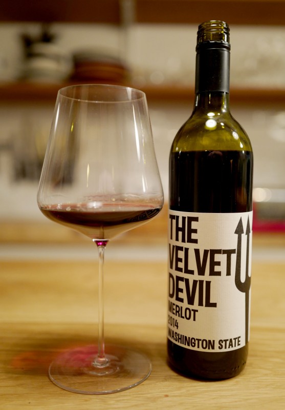 Charles Smith Velvet Devil Merlot 2014, Kr. 189,90. (finnes på Vinmonopolet flere steder i landet) Denne kule vinen er laget av amerikaneren Charles Smith som en periode bodde i Danmark og var manager for bl.a det kjente bannet The Ravonettes. Han reiste tilbake til USA i 1999 og begynte å produsere viner. Velvet Devil inneholder: Malbec 2%, Cabernet Franc 1%, Cabernet Sauvignon 3%, Merlot 94%. Gjæret tradisjonelt ved lav temperatur i ståltanker, modnet på bunnfallet. Passer perfekt til grillede kjøttstykker.