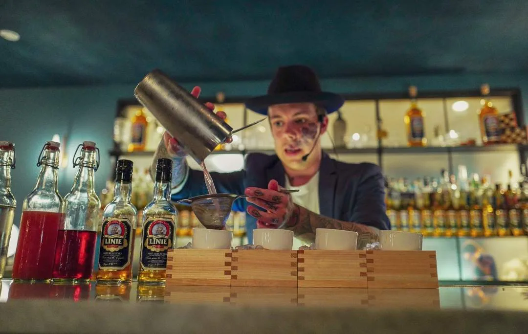 I går ble årets Linie The Journey arrangert på Bortenfor i Oslo. Dette er en internasjonal cocktailkonkurranse der bartenderene skal ta utgangspunkt i Linie Aquavit og la seg inspirerer av et av stoppene båten gjør underveis i Tyskland, Belgia, England, USA, Panama, New Zealand, Australia, Singapore, Kina, Korea, Japan og Mexico. Båtene som er lastete med Linie Aquavit krysser ekvator to ganger på sin ferd.
