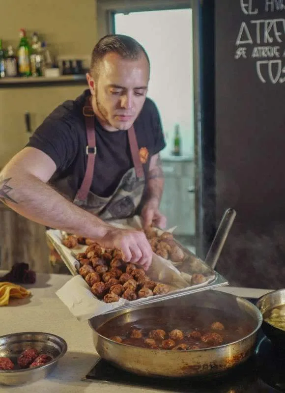 Legg kjøttbollene i tomatsausen som Pau Navarro laget slik: