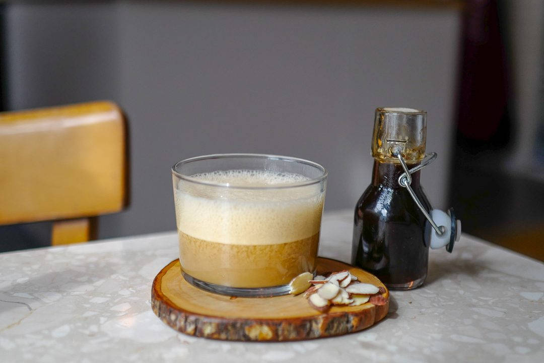 Baileys Almande har for tynn konsistens, etter min mening. Bar med isbit er selvsagt å foretrekke, men jeg synes det er gøy å teste det ut i en drink også. Det måtte bli iskaffe. For å få mer pønsj inn i smaken tilsatte jeg hjemmelaget kaffesirup. Det ble fantastisk godt og mandellikøren kom til sin rett.
