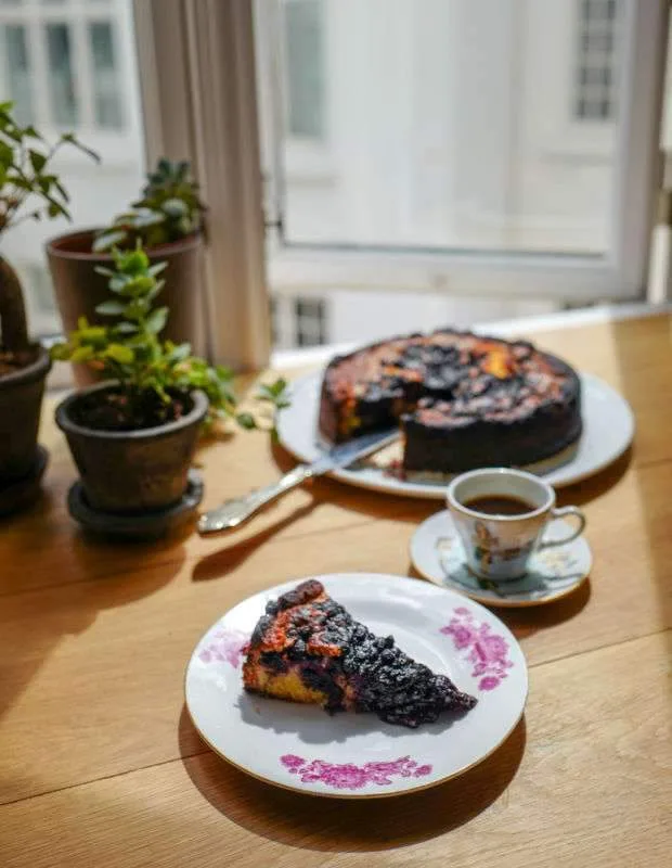 Det ble en favoritt til alle anledninger. Den smaker godt nybakt, men enda bedre dagen etter når blåbærene har fått satt seg i kaken. Den smaker godt med pisket krem til eller vaniljeis. Jeg liker den aller best alene med en kopp kaffe.