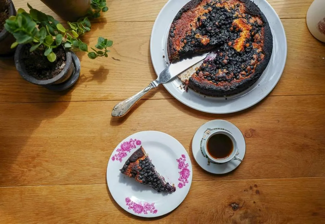 Det ble en favoritt til alle anledninger. Den smaker godt nybakt, men enda bedre dagen etter når blåbærene har fått satt seg i kaken. Den smaker godt med pisket krem til eller vaniljeis. Jeg liker den aller best alene med en kopp kaffe.