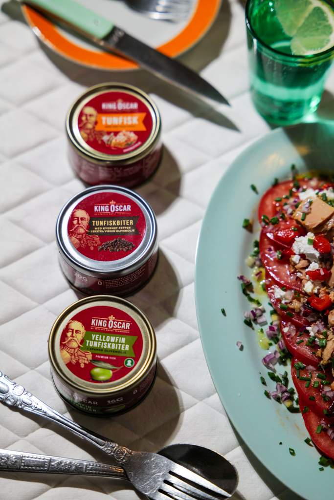Jeg brukte King Oscars tunfisk med pepper. Den synes jeg er så utrolig god. Den er litt kraftigere på smak enn den vanlige tunfisken på olje. Jeg kunne også brukt tunfisk med smak av tomat og basilikum, men da hadde jeg nok heller laget en italiensk variant. Tunfisk med kvernet pepper passer perfekt til akkurat denne retten. Man trenger litt ekstra smell i smakene. Jeg bruker både hakket rødløk og gressløk. Når man serverer noe med brunet smør må man også ha noe skarpt til og begge deler gir dette samt farge.