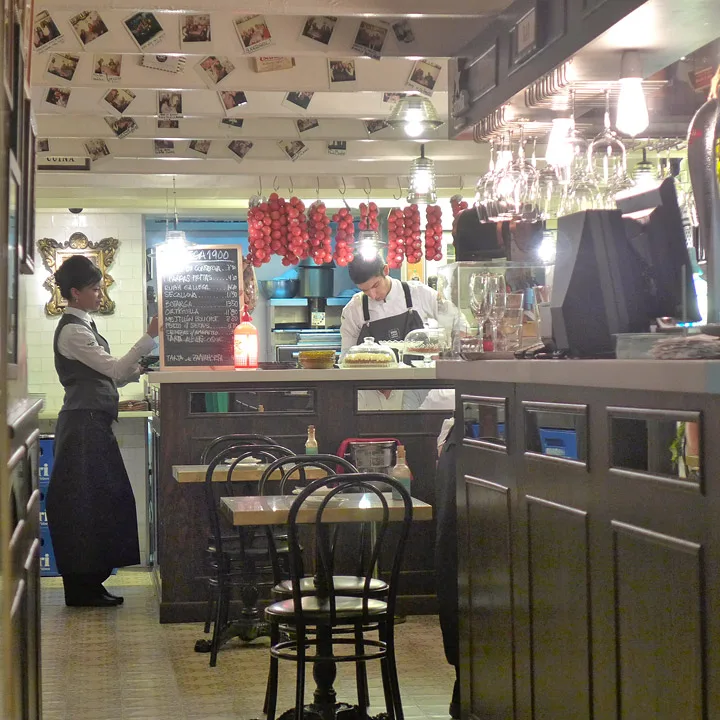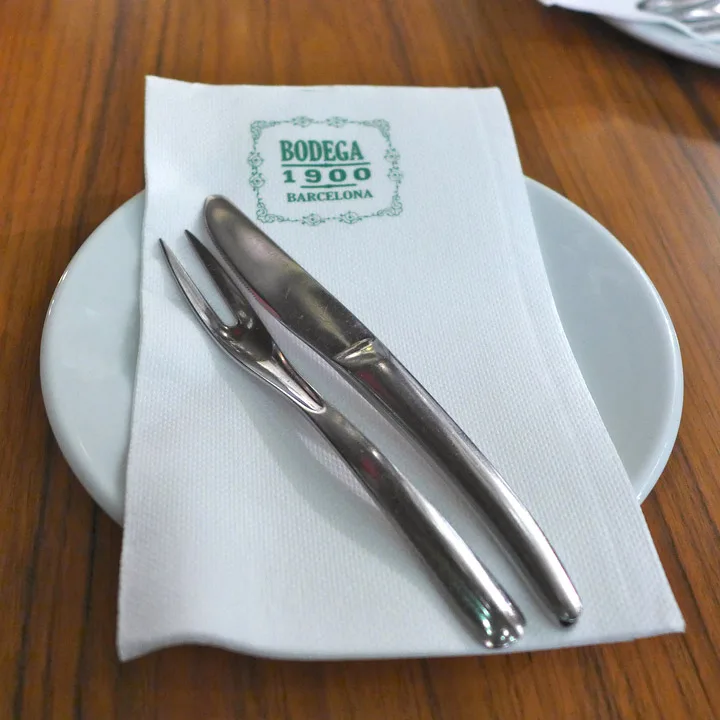 Dette er Albert Adrià sin baby. Han prøver å gjenskape minnene fra sin barndom da hans foreldre, før middagsforberedelsene, stakk innom et slikt vermuteria for et lite glass vermut (sterkvin laget på urter) og en tapasrett. Slik er det på Bodega 1900 også. Du skal kunne gå innom for et glass vermut og noen tapas. Sånn fungerer det ikke helt, for det er trangt om plassen og du må bestille i forveien. Men det er mye lettere å få bord her enn på Tickets og Pakta (to måneders ventetid). Vi ringte dagen før og fikk bord.