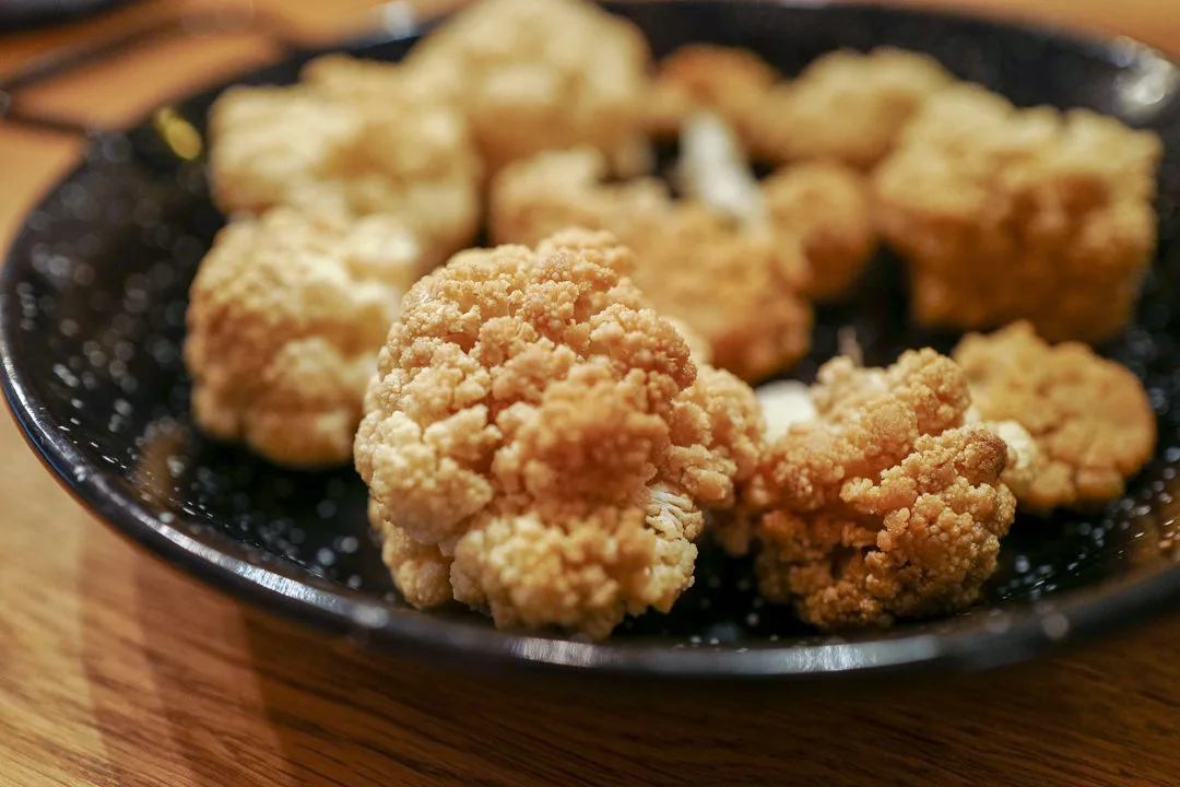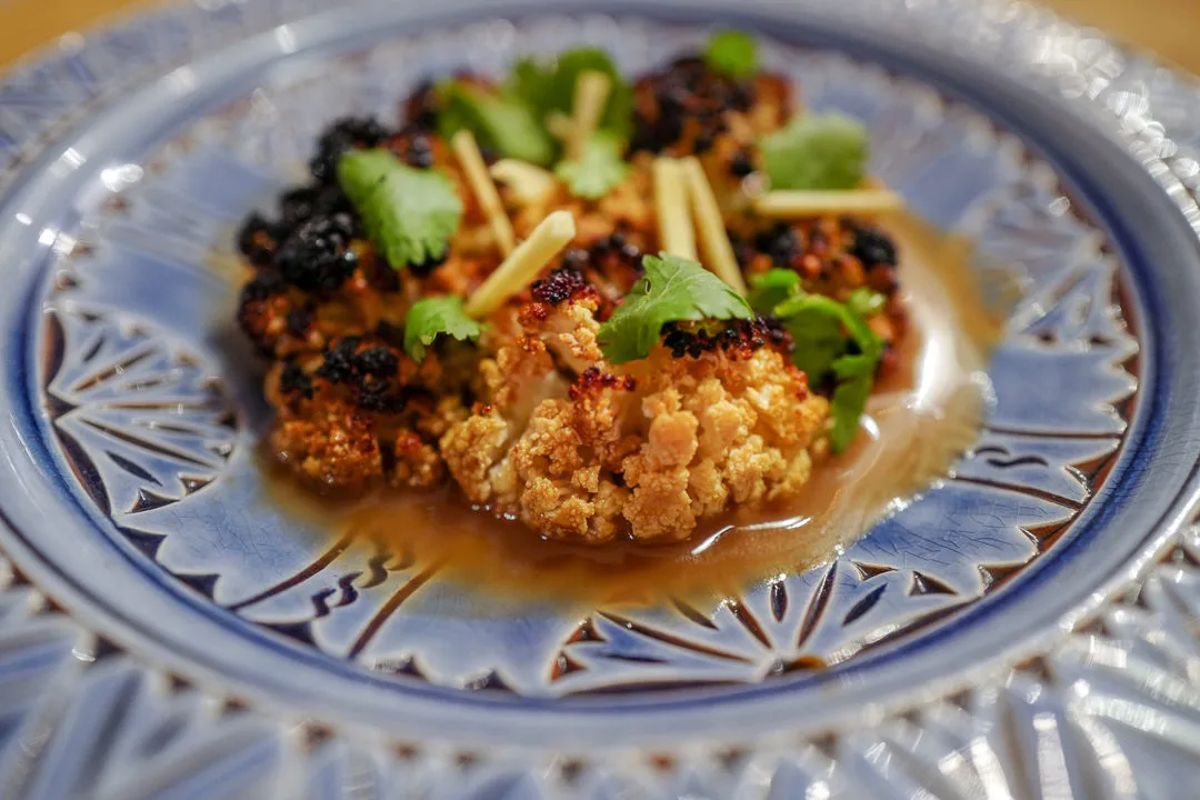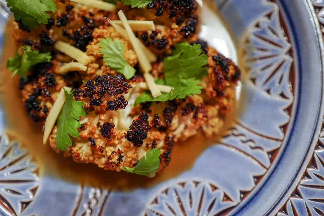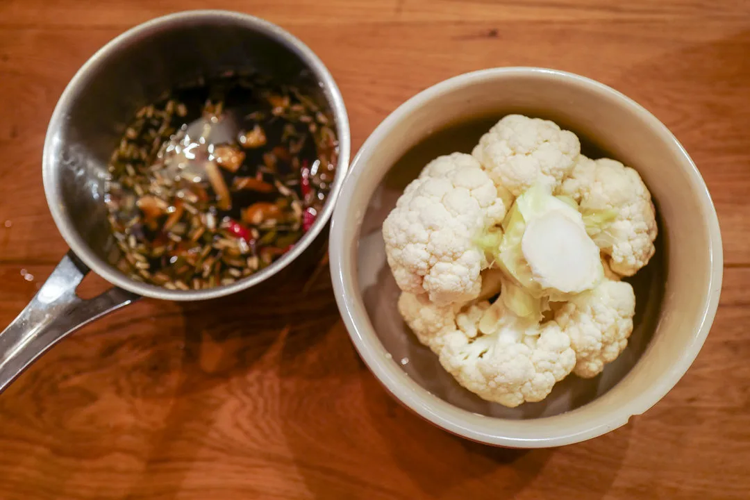Blomkål er en takknemlig råvare å smaksette. Den er ganske nøytral i smaken og derfor lett å jazze opp. Men før du smaksetter grønnsaken må du åpne blomstene på blomkålen slik at de blir mottakelig for det. Etter du har gjort det (og jeg viser deg hvordan i oppskriften) vil du se at blomkålsbusken blir som en svamp. Den tar til seg smak og får også evnen til å bli sprø og fin. Akkurat som kyllingvinger som får en runde under grillen.