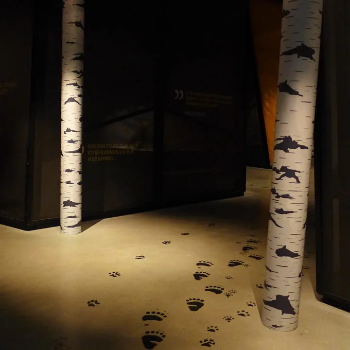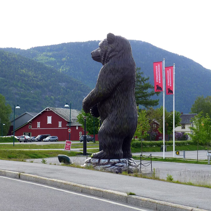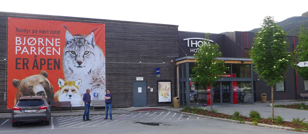Så er det å komme seg i seng, og vi tusler den korte veien forbi Bjørneparken og ned til Flå sentrum. På hotellet er det bare å følge bjørnesporene rett i seng.