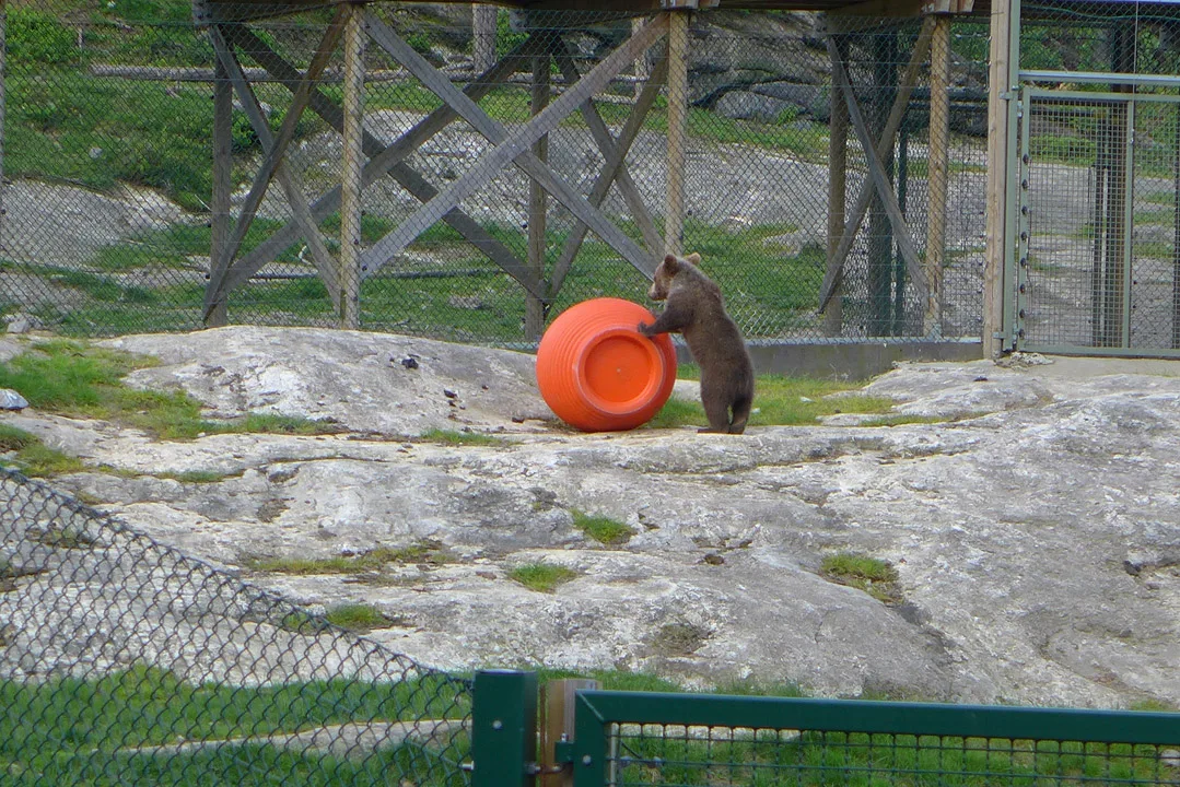 Morgenene etter får vi komme inn i Bjørneparken før åpningstid og hilse på Nora og Brutus. Brutus ble født i januar og er en leken krabat. De poserer bra for oss mens de spiser bær og frukt. For en opplevelse å være i Bjørneparken. Lite visste jeg om at det var så fint her. Vi hilser på de nyfødte geitekillingene og reveungene er redde og vil bare ligge inne i huset sitt. Neste gang jeg kommer hit vil jeg se de andre dyrene også. Men da må jeg sette av dagen, for noe av de geniale tilbudene de har her i parken, er at man kan grille på grillene som står ved piknik-bordene ved bjørneavdelingen og spise, kose seg og observere bjørnene mens de koser seg. Alle skal ha det bra, med andre ord.