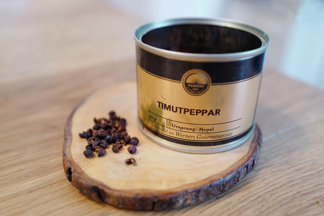 Tips: Her har jeg brukt en litt spesiell type pepper som jeg kom over hos Strömstad Mat. Jeg finner alltid artige ting der og denne gangen fant jeg noe som heter timut-pepper. Hva i all verden er det, tenker du? Det tenkte jeg også og spurte den hjelpsomme betjeningen i butikken. Det er en peppersort som er i familie med den mer kjente sichuan-pepperen. Timut-pepper er fra Nepal og har helt klar smak av grapefrukt (!) Helt sant! Jeg knuste rett og slett litt av den og hadde i potetretten. Finner du ikke denne pepperen i butikken kan du bruke helt vanlig svartpepper. Men er du av den nysgjerrige typen ville jeg gått på jakt etter timut-pepper.