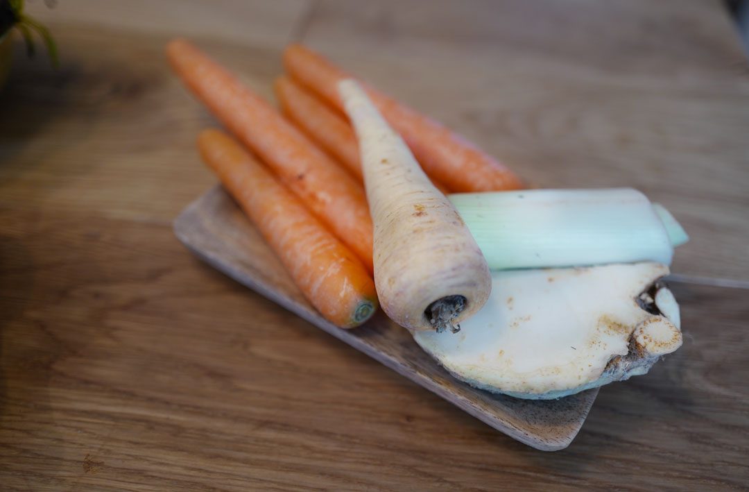 1 pakke «soppmiks» (suppemiks nå norsk) Dette er grønnsaker til suppe eller kraft som du finner i grønnsaksavdelingen på Strömstad Mat. Den består av sellerirot, gulrot, purre og persillerot. Perfekt til kraft og til denne retten. De gir god smak til sausen, som er en viktig del av retten.