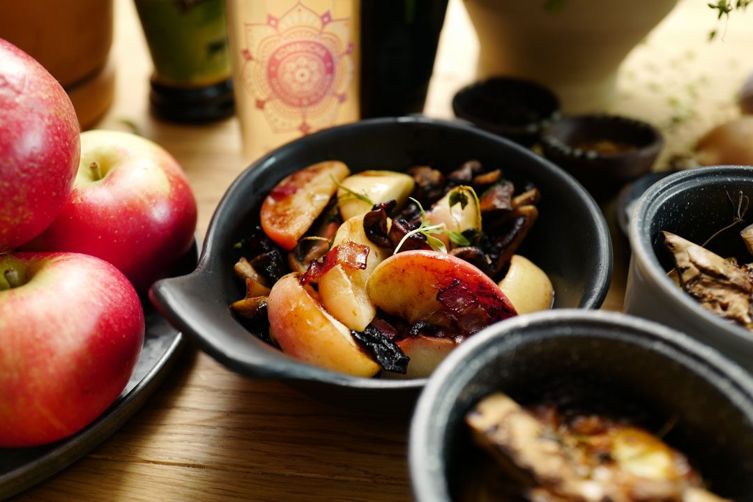Epler og svin er en perfekt kombinasjon. Tilfører du bacon og sopp også har du et tilbehør som passer perfekt til villsvinet.