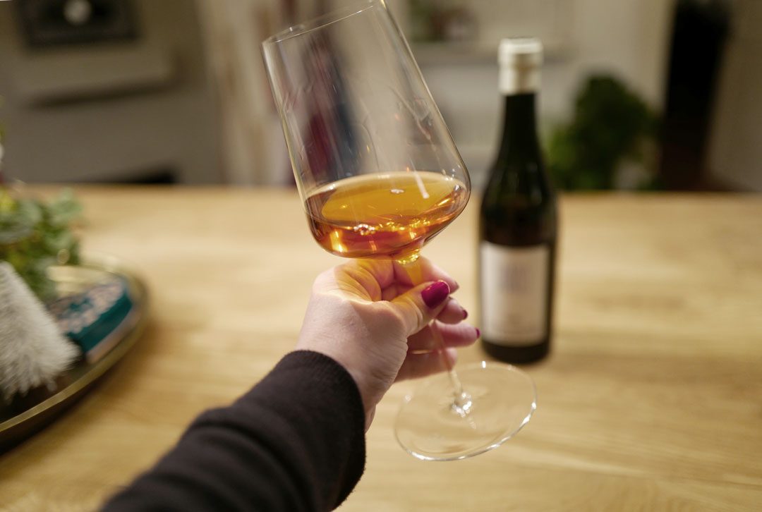 Men først må jeg til bunns i hva oransjevin egentlig er. Det er ingen egen kategori på vinmonopolet, men stikkordet «skallmaserasjon eller skallkontakt” er greie søkeord, for oransjeviner er hvitviner som har ligger med skallkontakt.