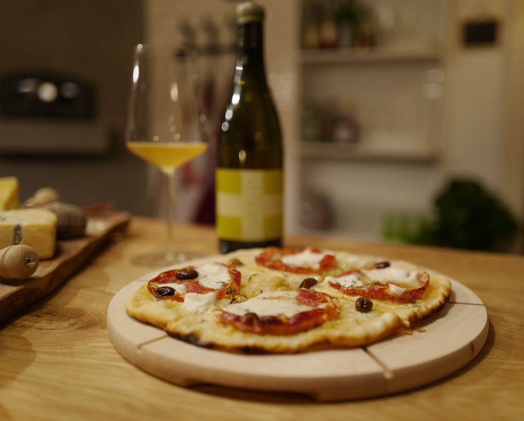 Mat: Super vin som passet veldig godt til pizza, oster og spekemat. Lys farge. Deilig.