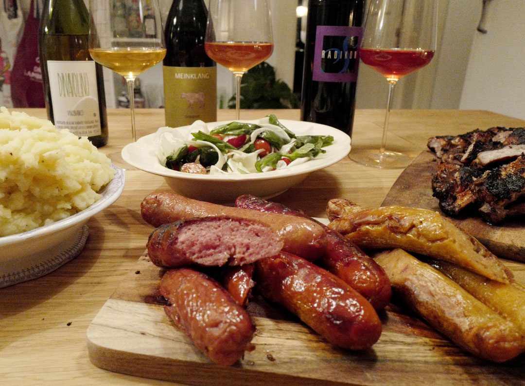Mat: Vi drikker denne til grillmat: Ribs og tre typer krydderpølser og til rød bacalao. Den er fortreffelig til begge rettene og en utrolig spennende vin.