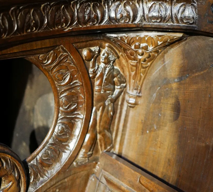 I Katedralen Santo Domingo de la Calzada vil du også finne spor av vin. Godt skjult i de flotte treutskjæringene i kirken finner man plutselig en vindrikkende mann.