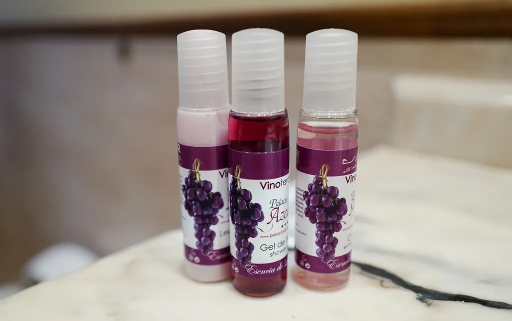 Min reise i La Rioja starter i den lille landsbyen Ezcaray. Jeg skal fortelle mer om dette stedet i et annet blogginnlegg når jeg skal skrive om det kulinariske La Rioja, men fordi dette innlegget handler om vin, vil jeg nevne hotellet Palacio Azcárate. Dette er et av de hotellene som bare har tre stjerner, men som jeg når som helst velger fremfor femstjerners kjedehotell. Dette hotellet har sjarm og personlighet. Jeg bor på et stort og deilig hjørnerom med utsikt utover en liten park og et lite torg. På badet står det skjønnhetsprodukter slik det alltid gjør på hotell. Men disse skjønnhetsproduktene er selvsagt laget av druesaft.